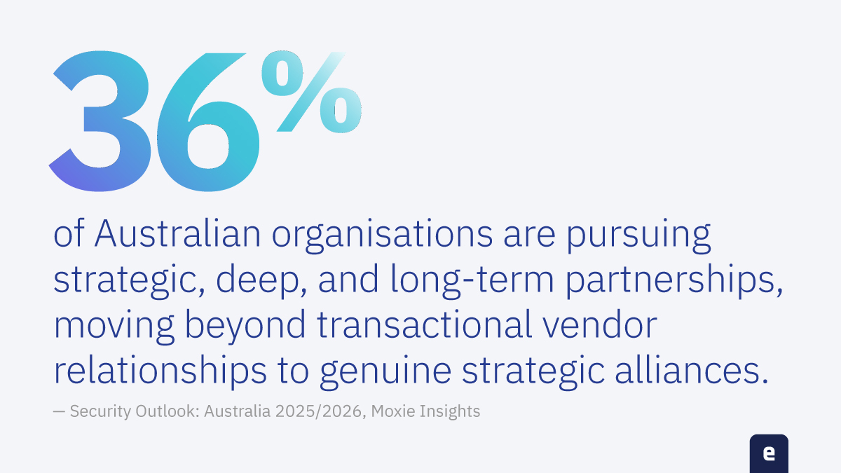 Modern partnership evaluation has moved far beyond cost and basic compliance. Australian organisations now prioritise strategic guidance (53%), deep expertise (58%), and proven track records (49%) when selecting security partners.