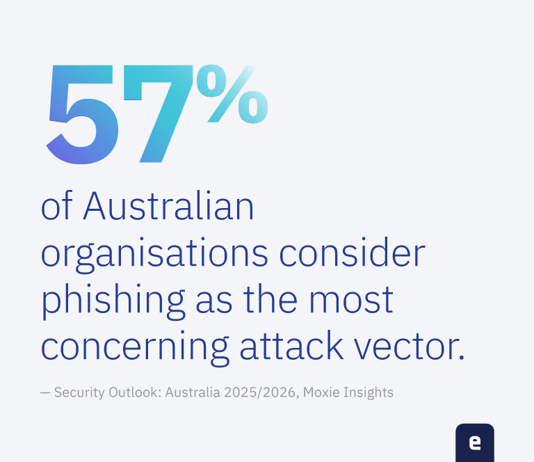 Identity has emerged as the primary battleground in modern Australian cyber security, with 57% of Australian organisations considering phishing as the most concerning attack vector. This threat has evolved far beyond simple business email compromise (BEC) campaigns, encompassing sophisticated voice phishing (i.e., vishing) attacks that bypass traditional security controls through social engineering.